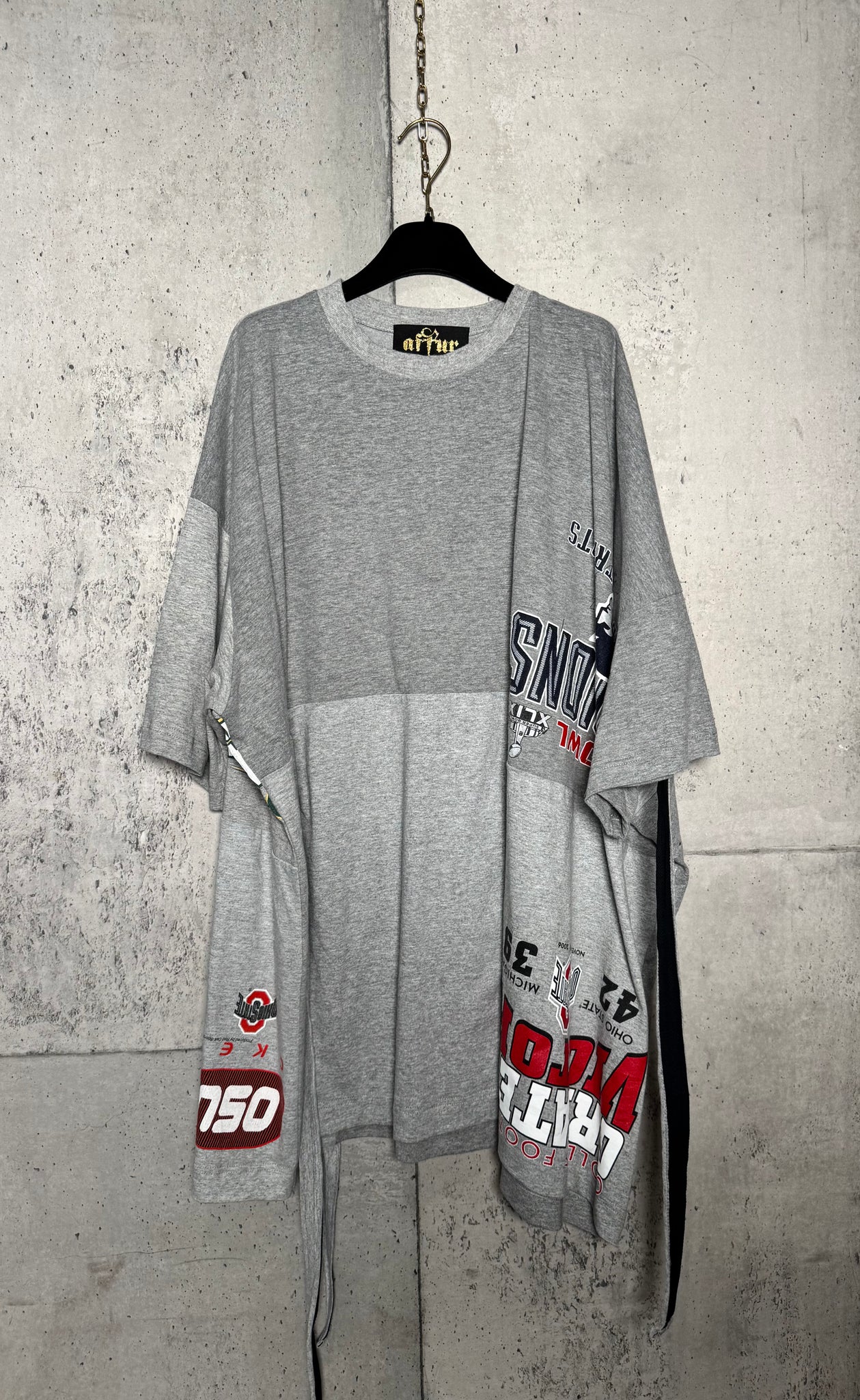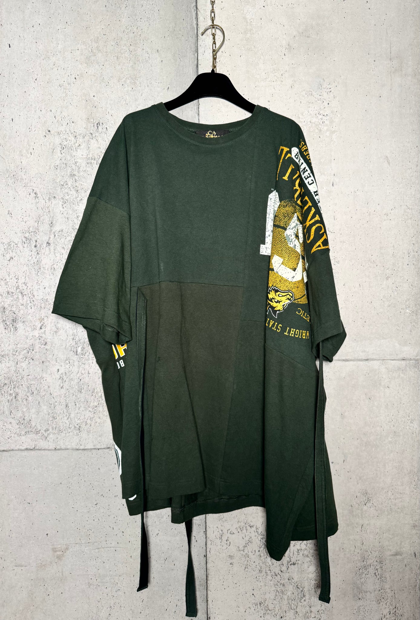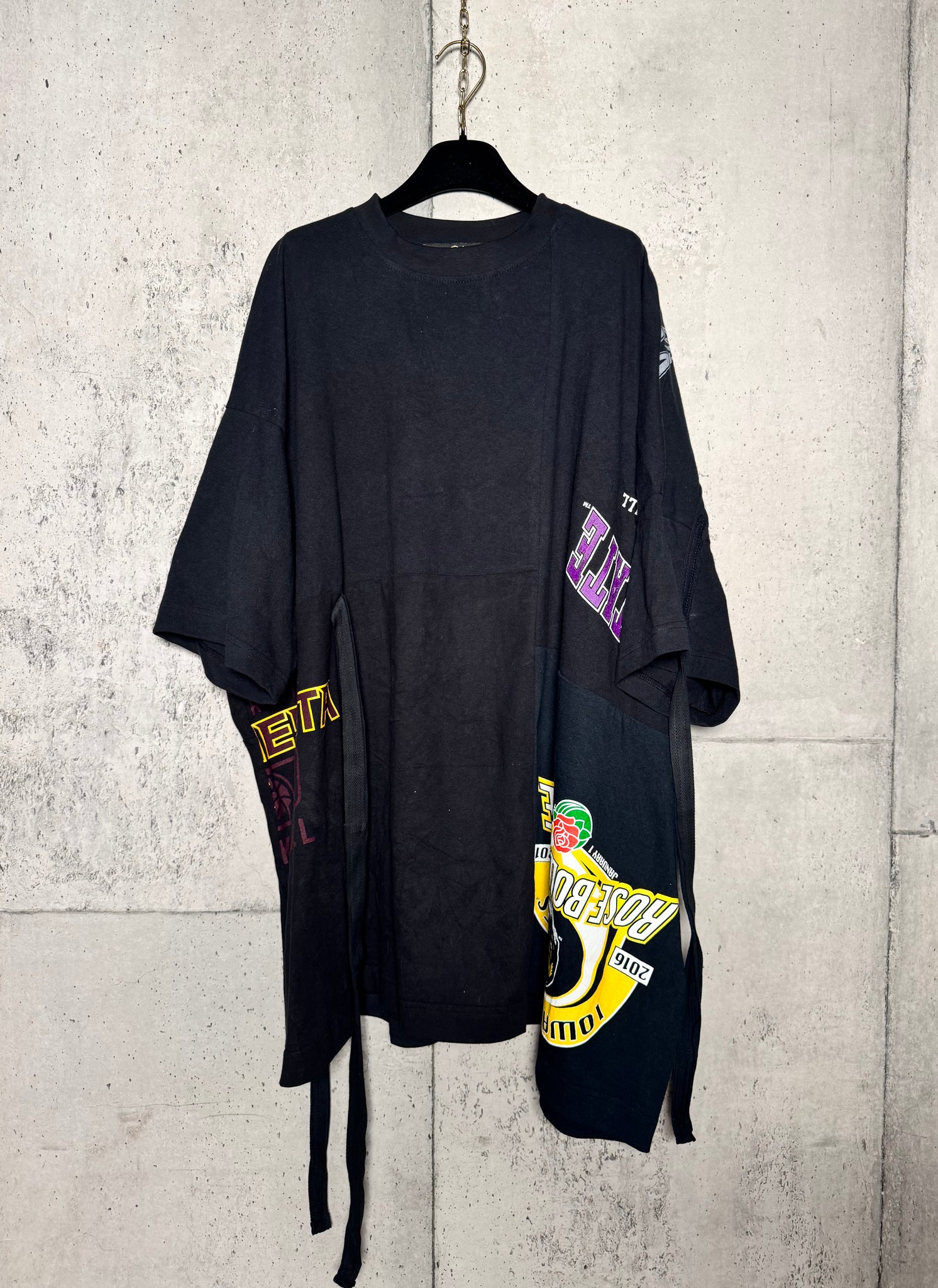 Asymmetrical oversized fit. One size. Optional tie waist on right side. Wear as a dress or an oversized t-shirt.