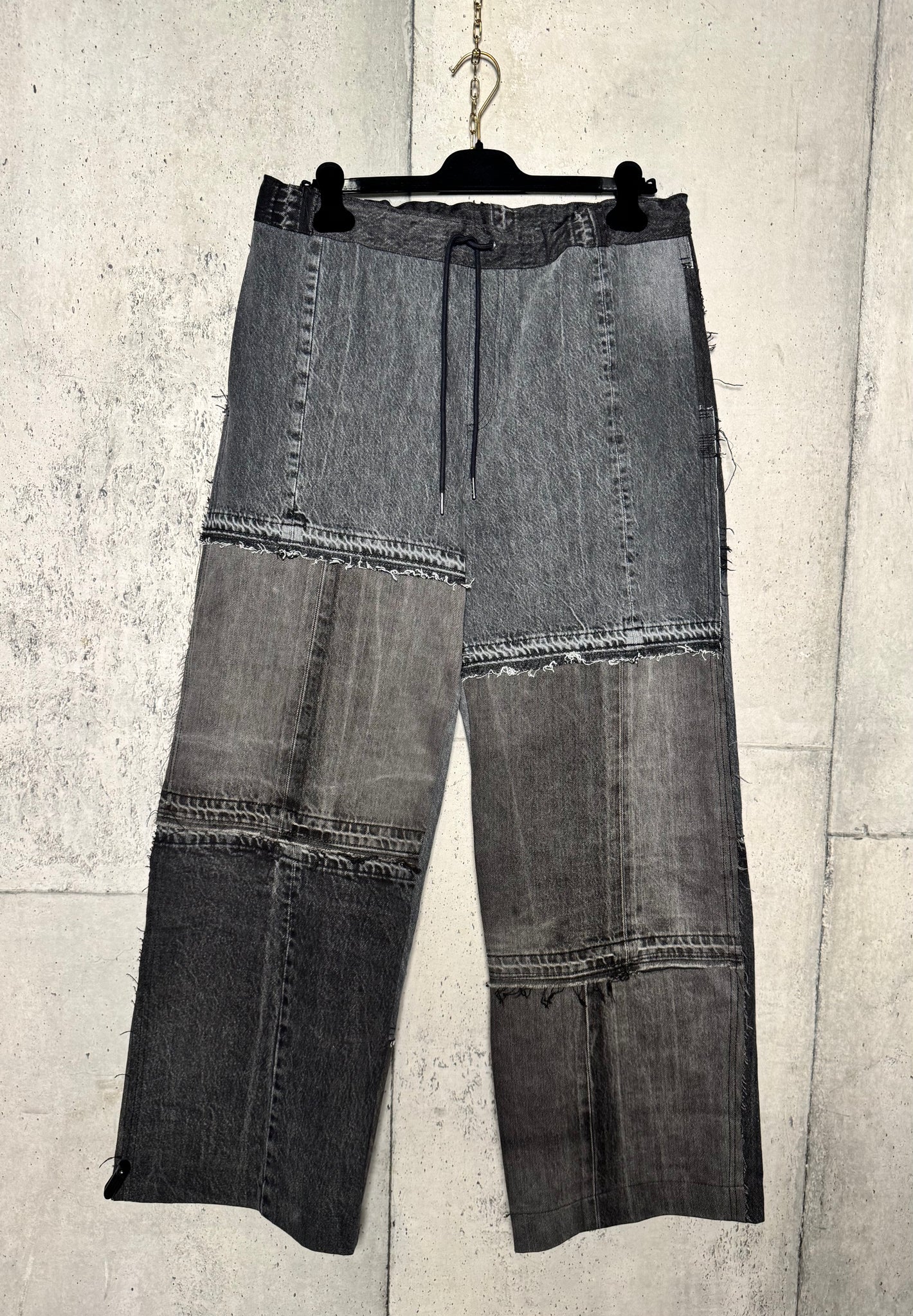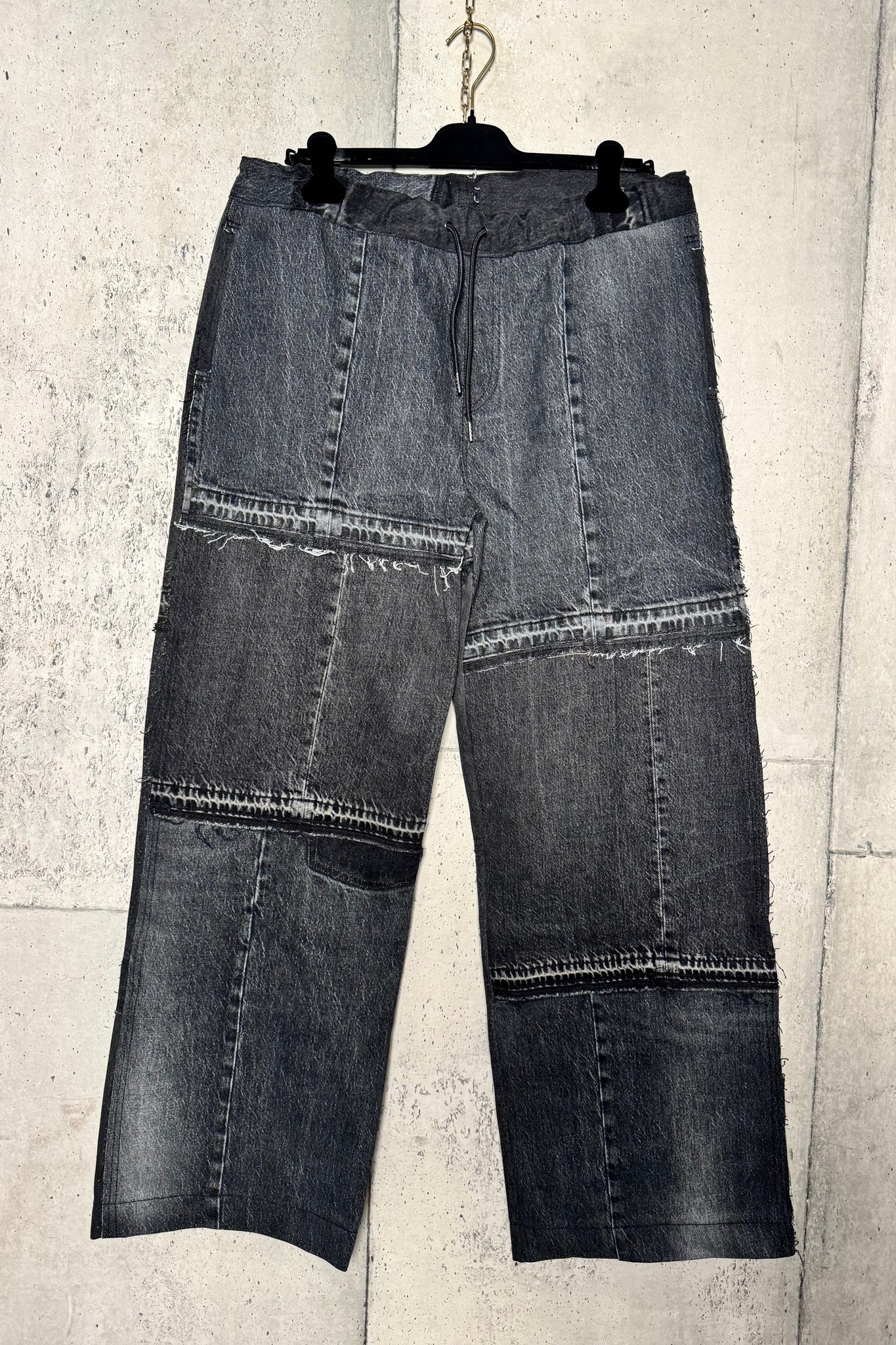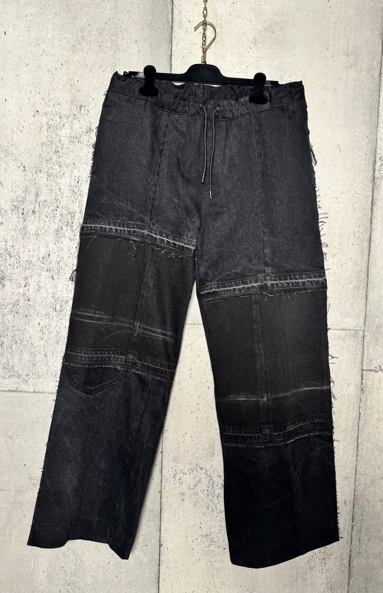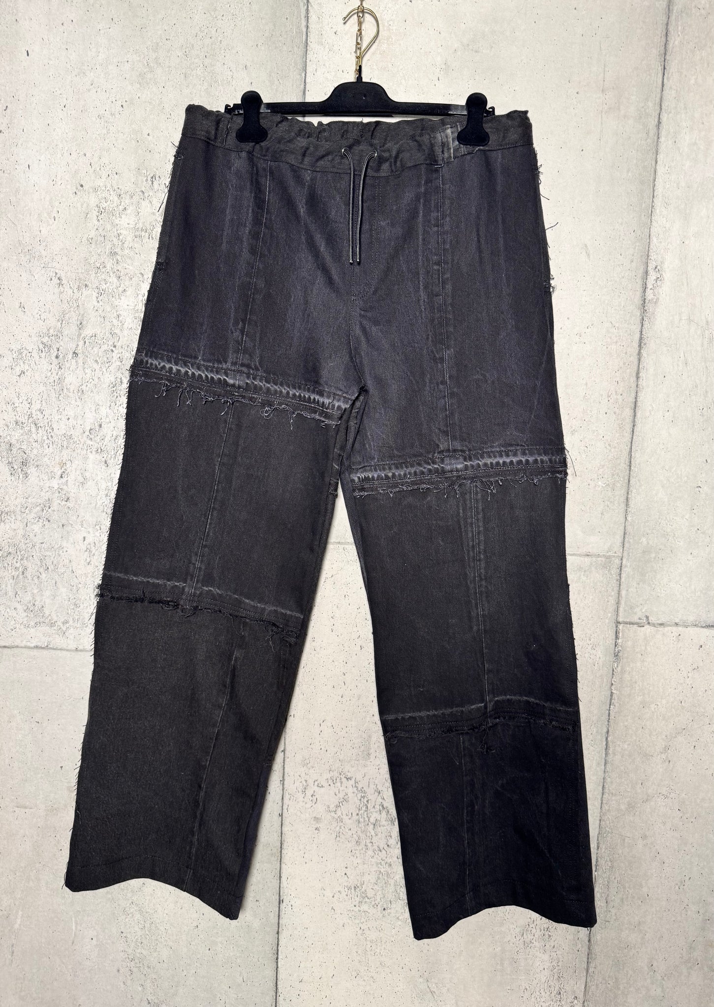 Wide leg jeans by Aftur in dark wash gray. Drawstring at elasticised waistband. High waist and extra long.